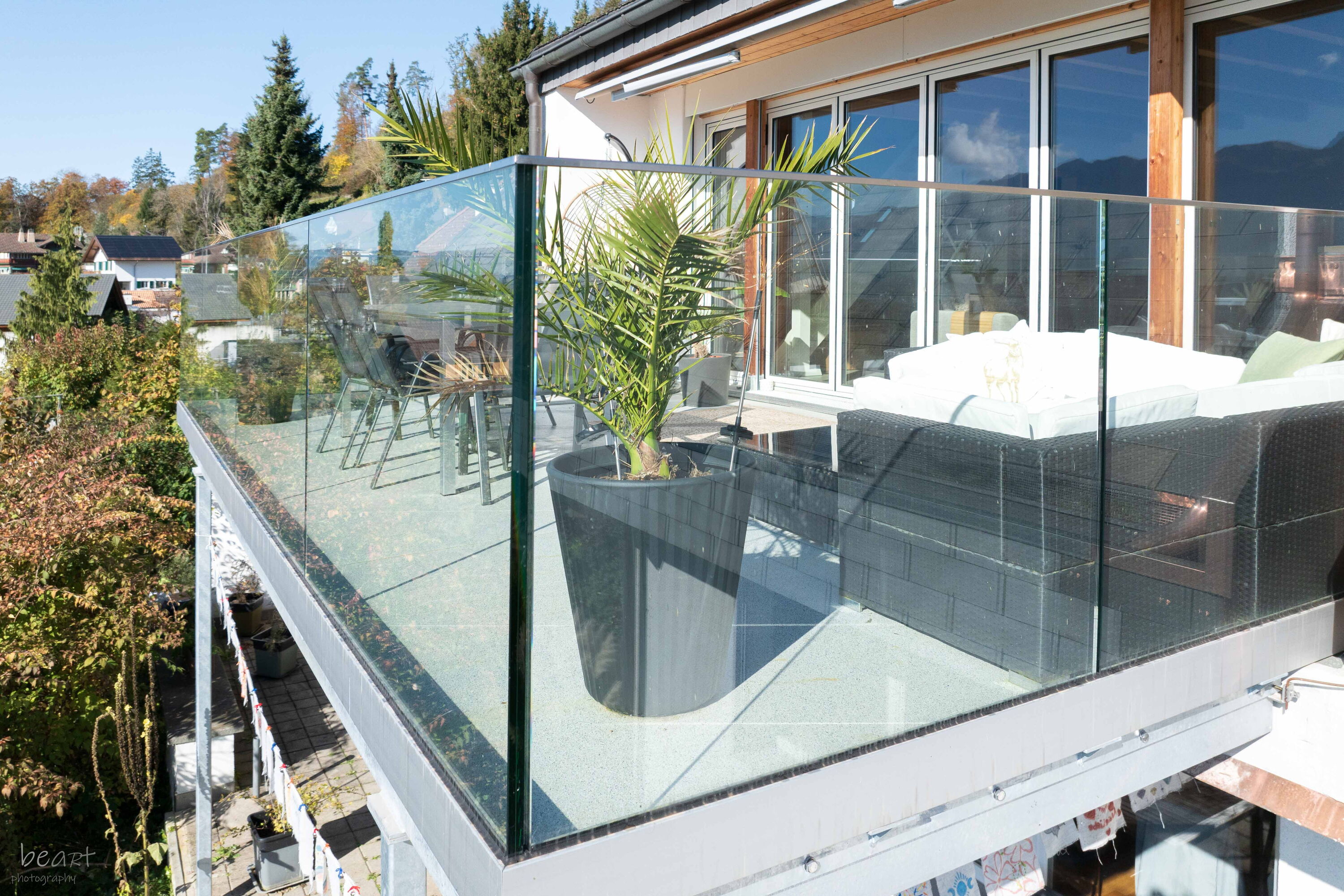 Balkonkonstruktionen mit Ganzglasgeländer